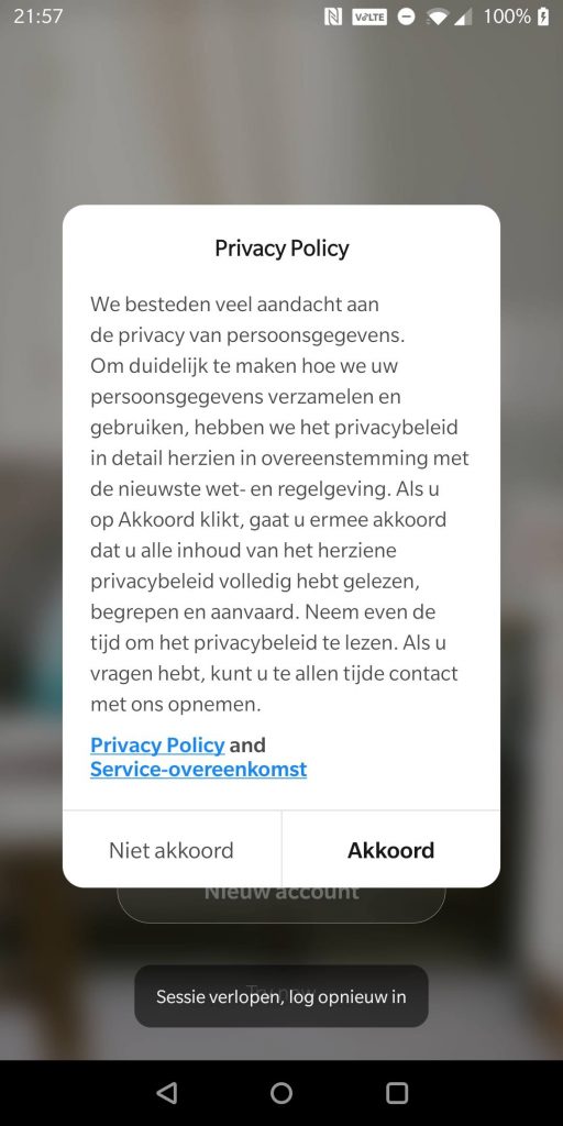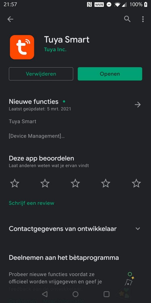 - Download Tuya Smartlife app via de Play Store, open de app en accepteer de privacy policy