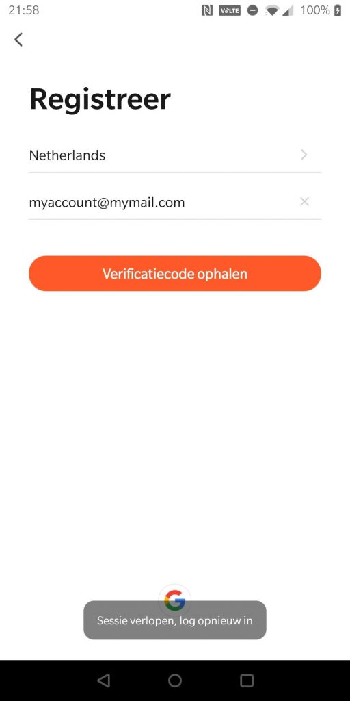 - Maak een account aan en vul de verificatiecode die je via de mail ontvangt
