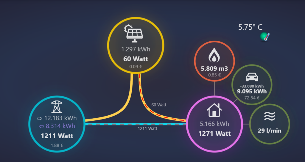 In Domoticz via het menu Instellingen -> Energie dashboard een Vrije Widget geconfigureerd: