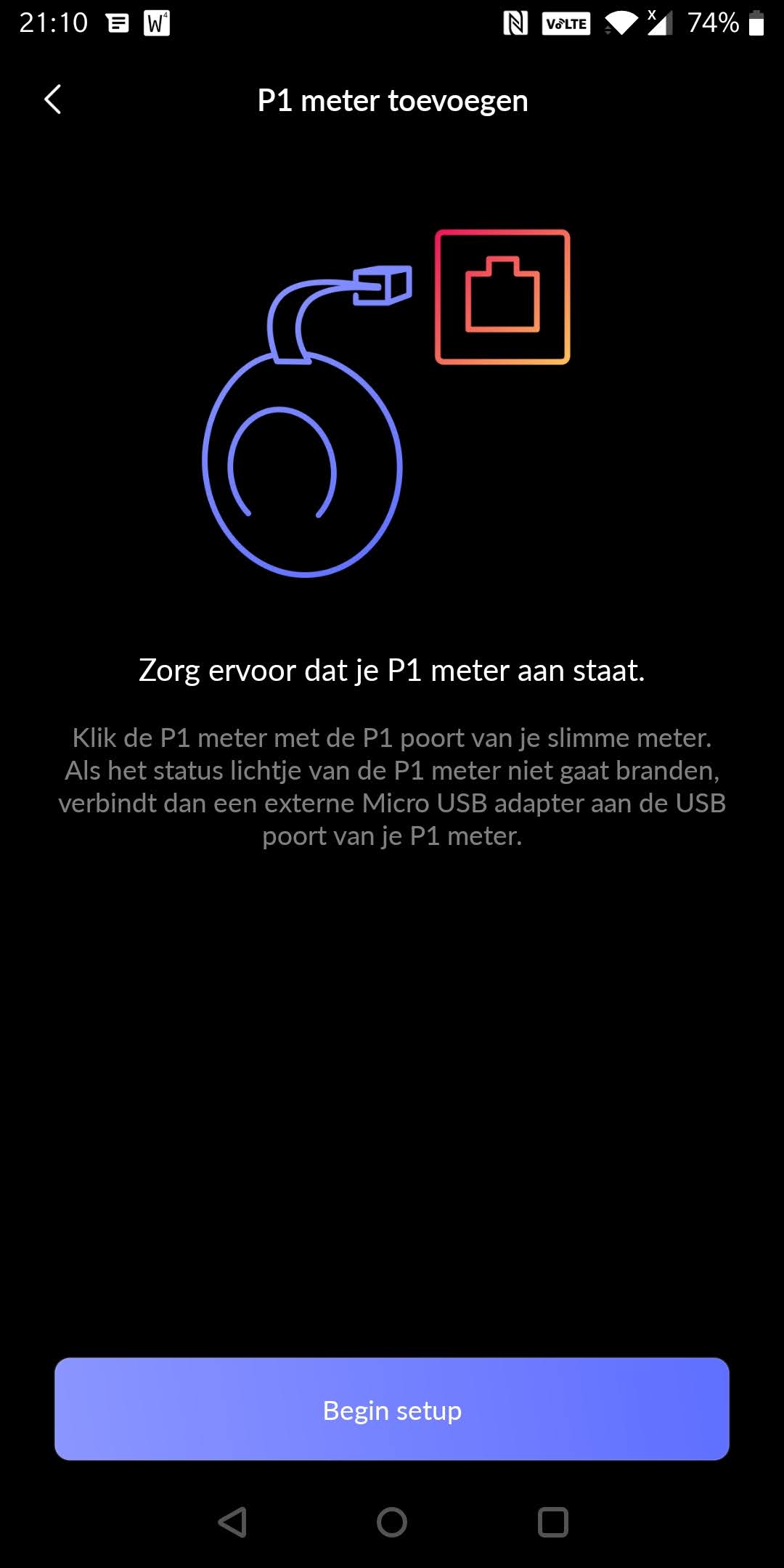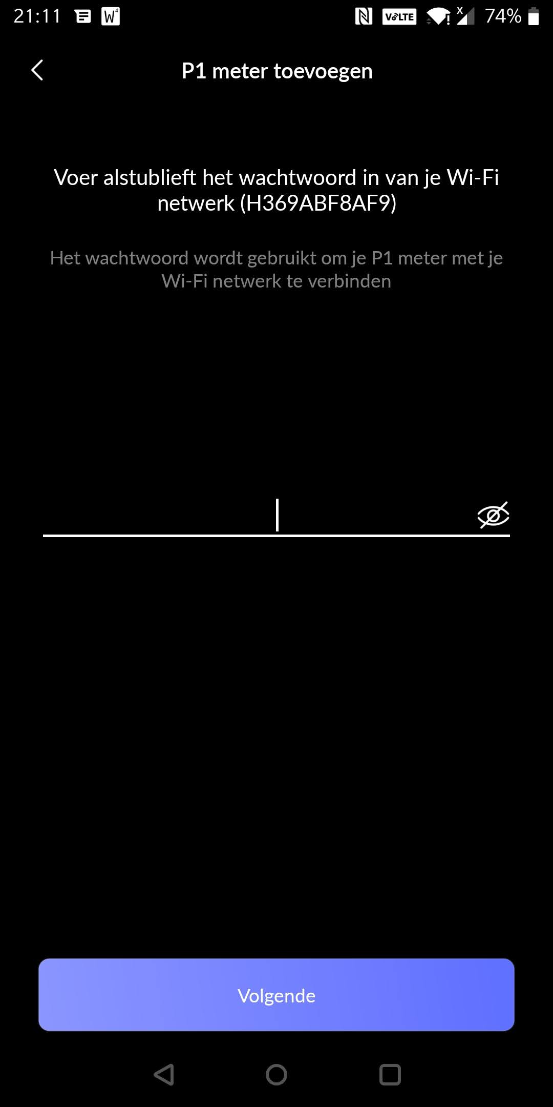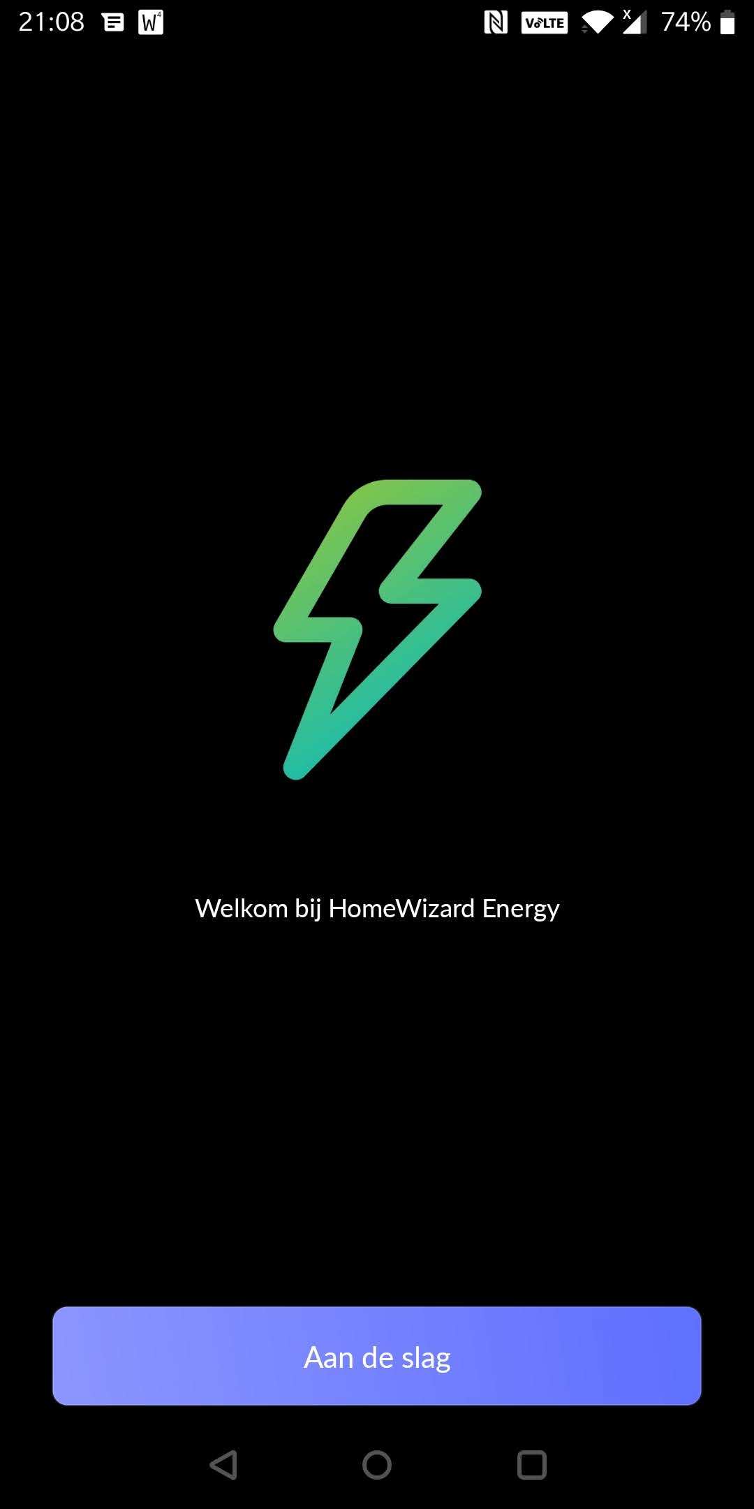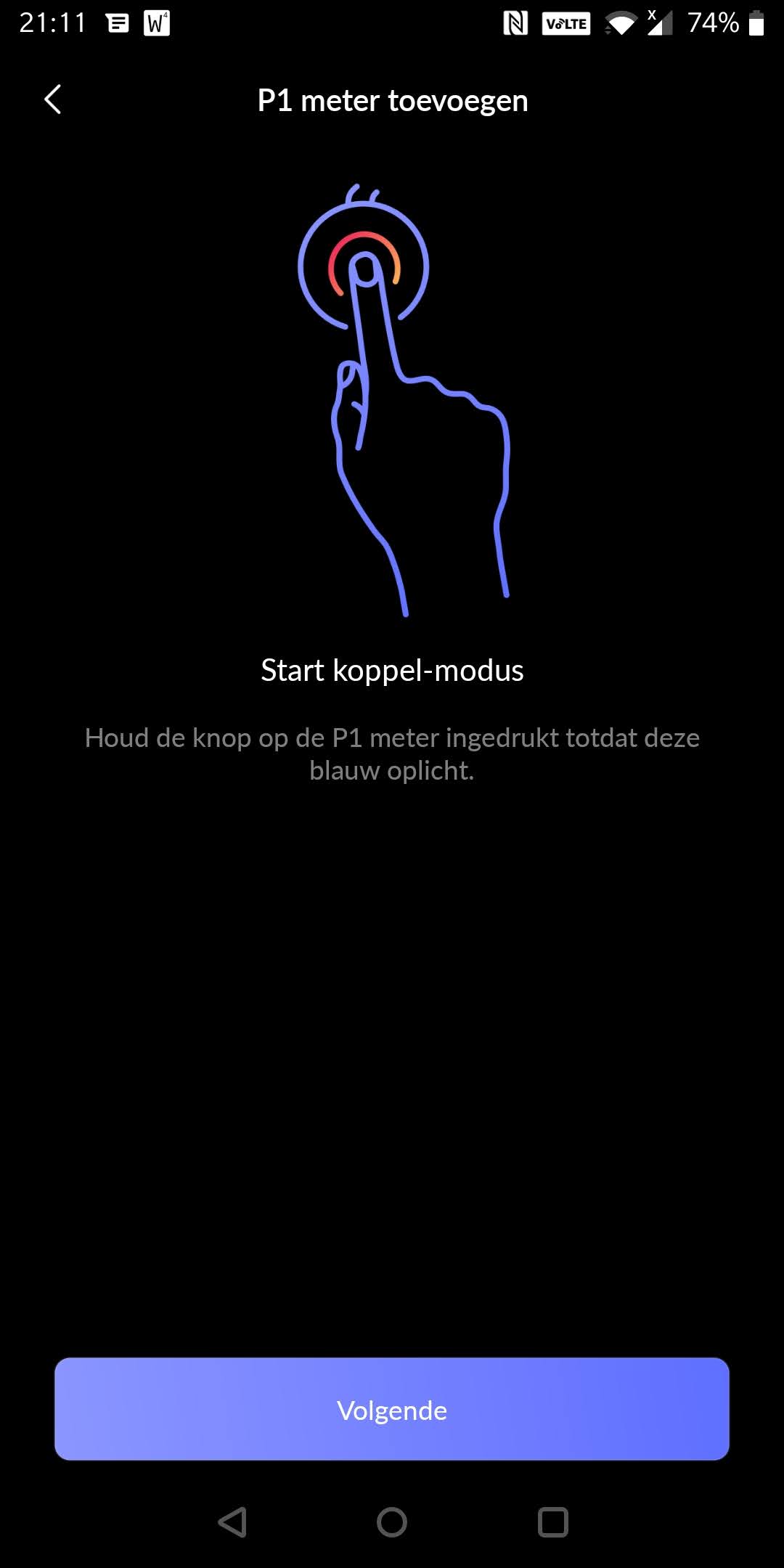 - Download de HomeWizard Energy App via de playstore, en doorloop de volgende schermen: