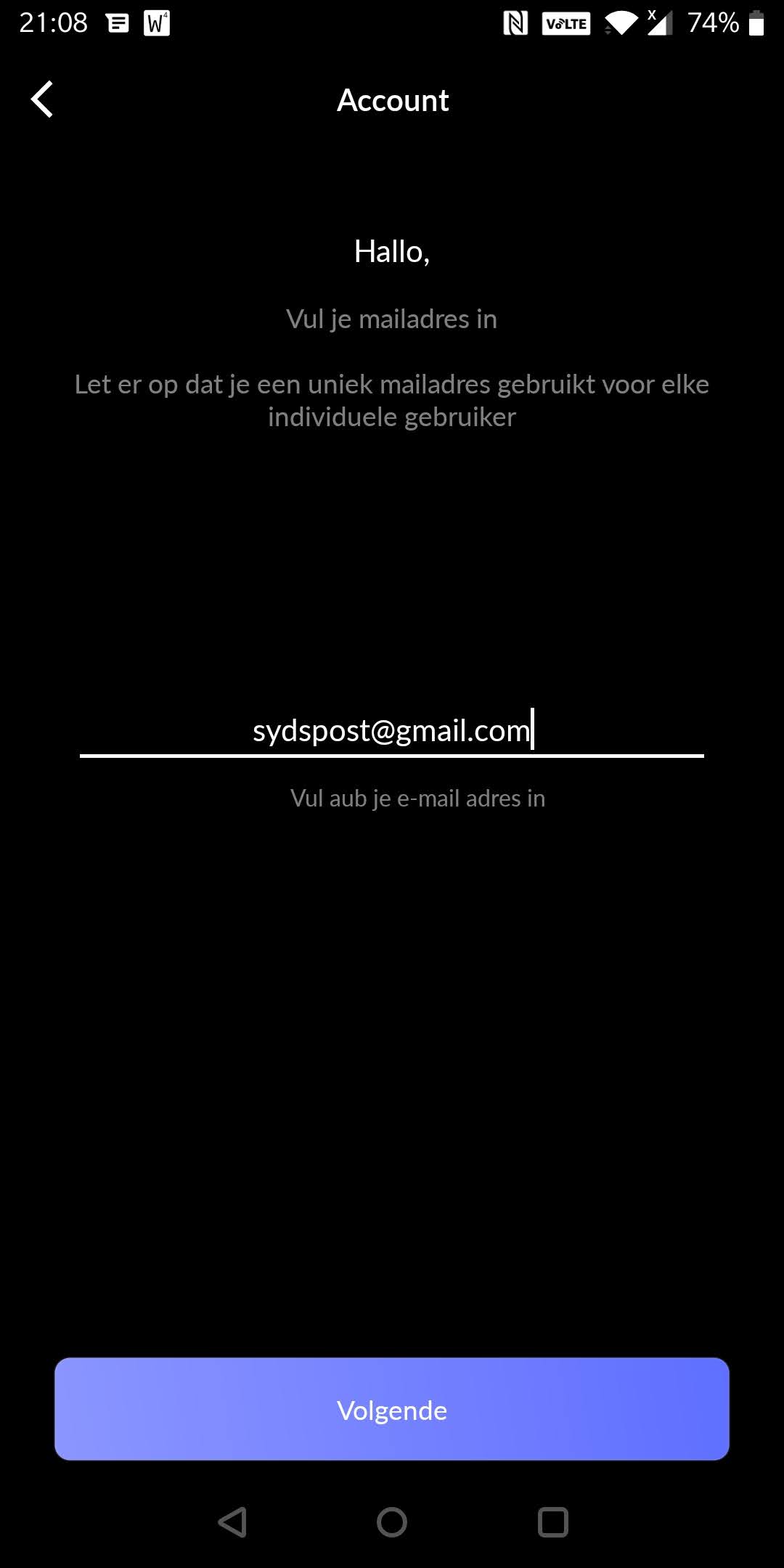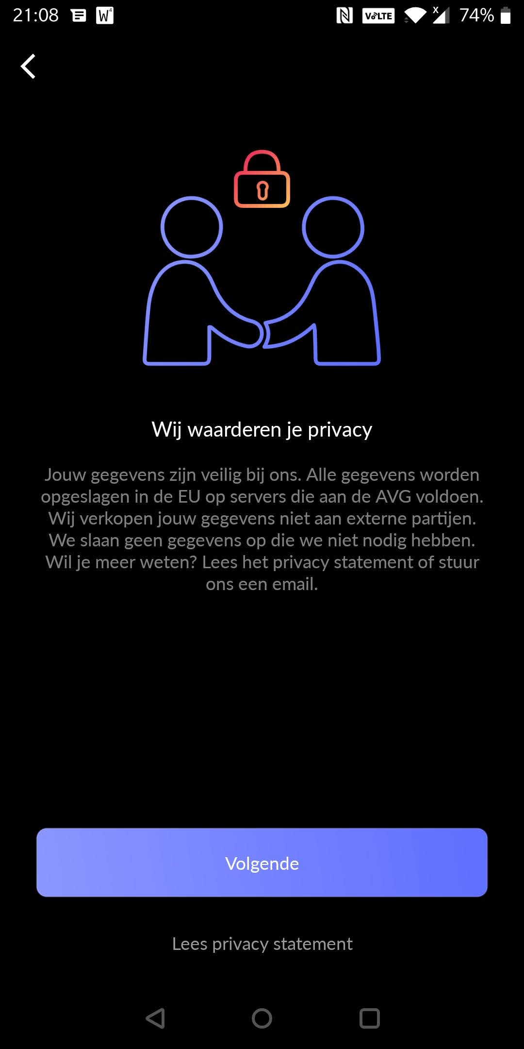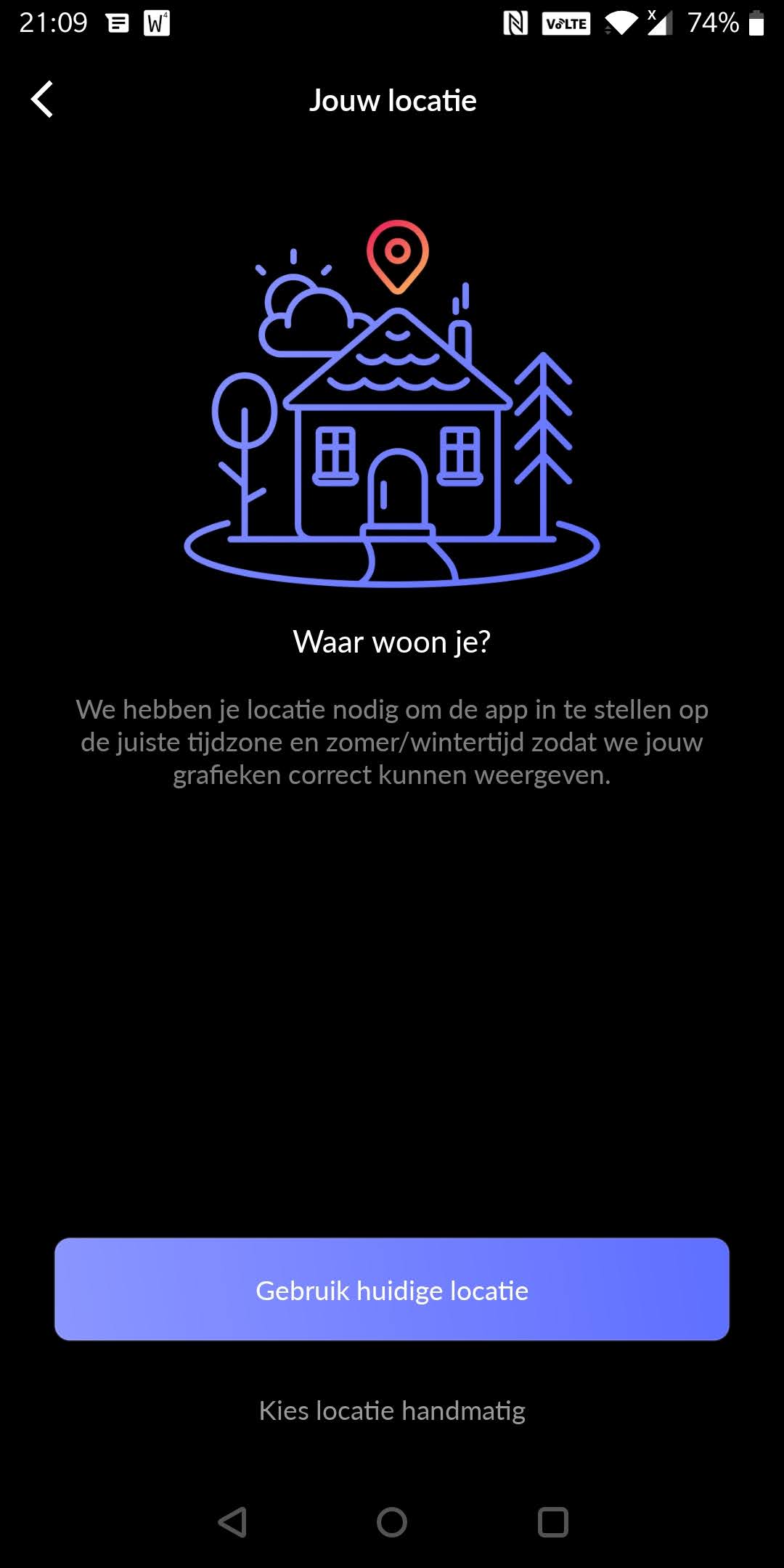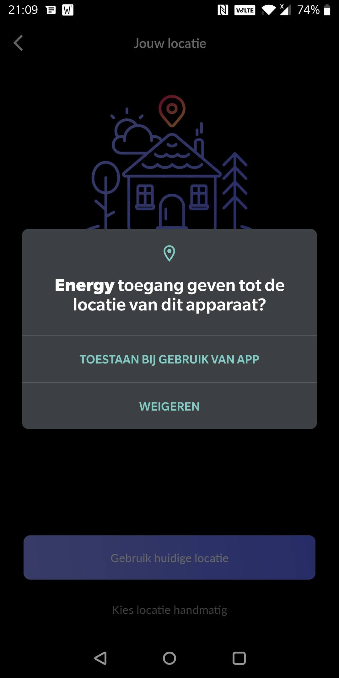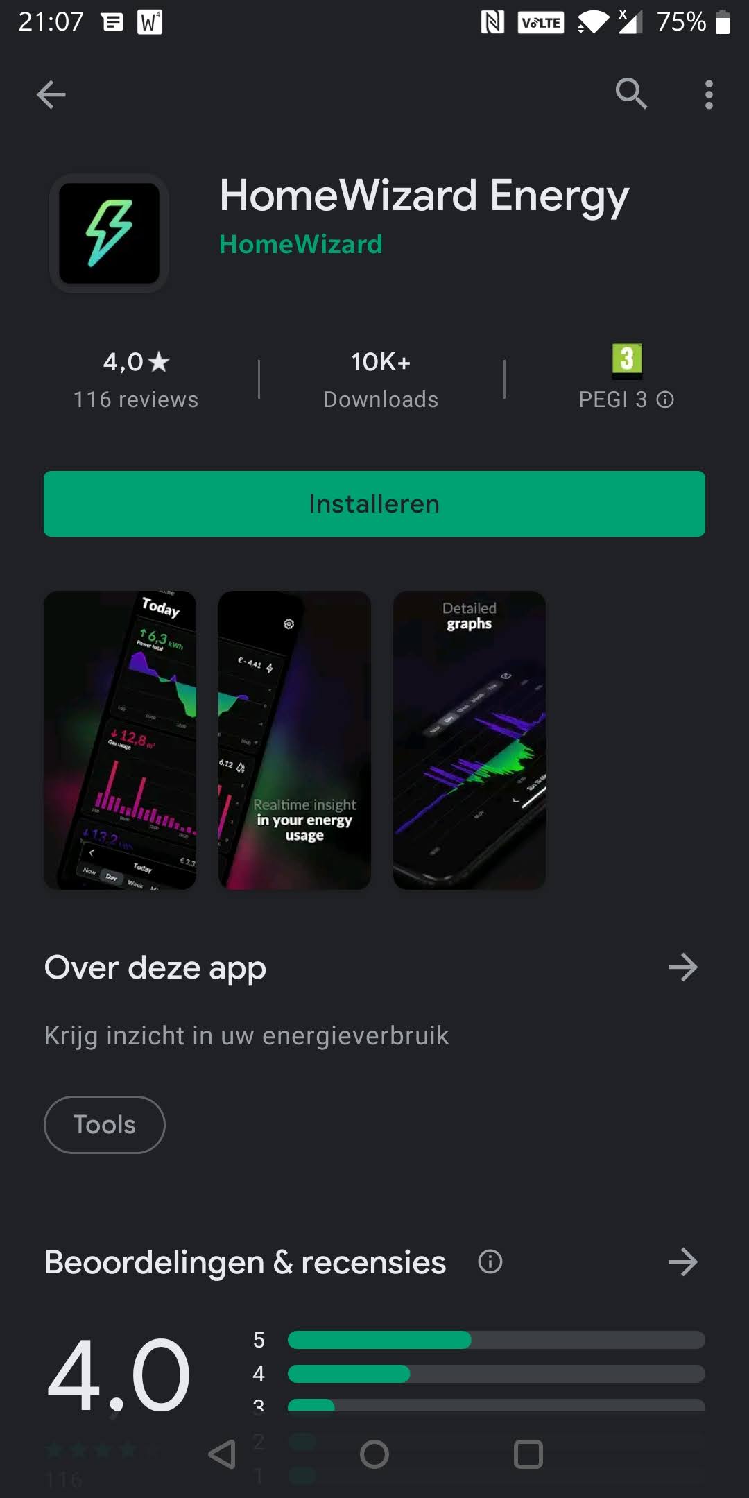- Download de HomeWizard Energy App via de playstore, en doorloop de volgende schermen: