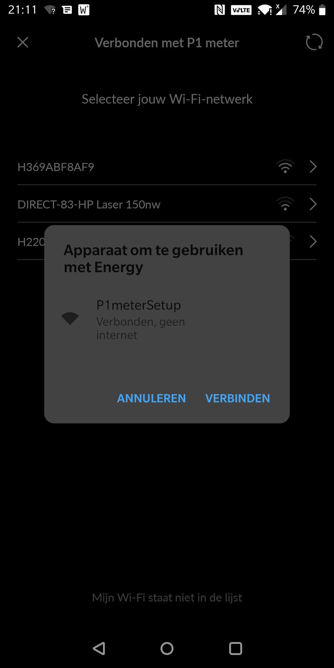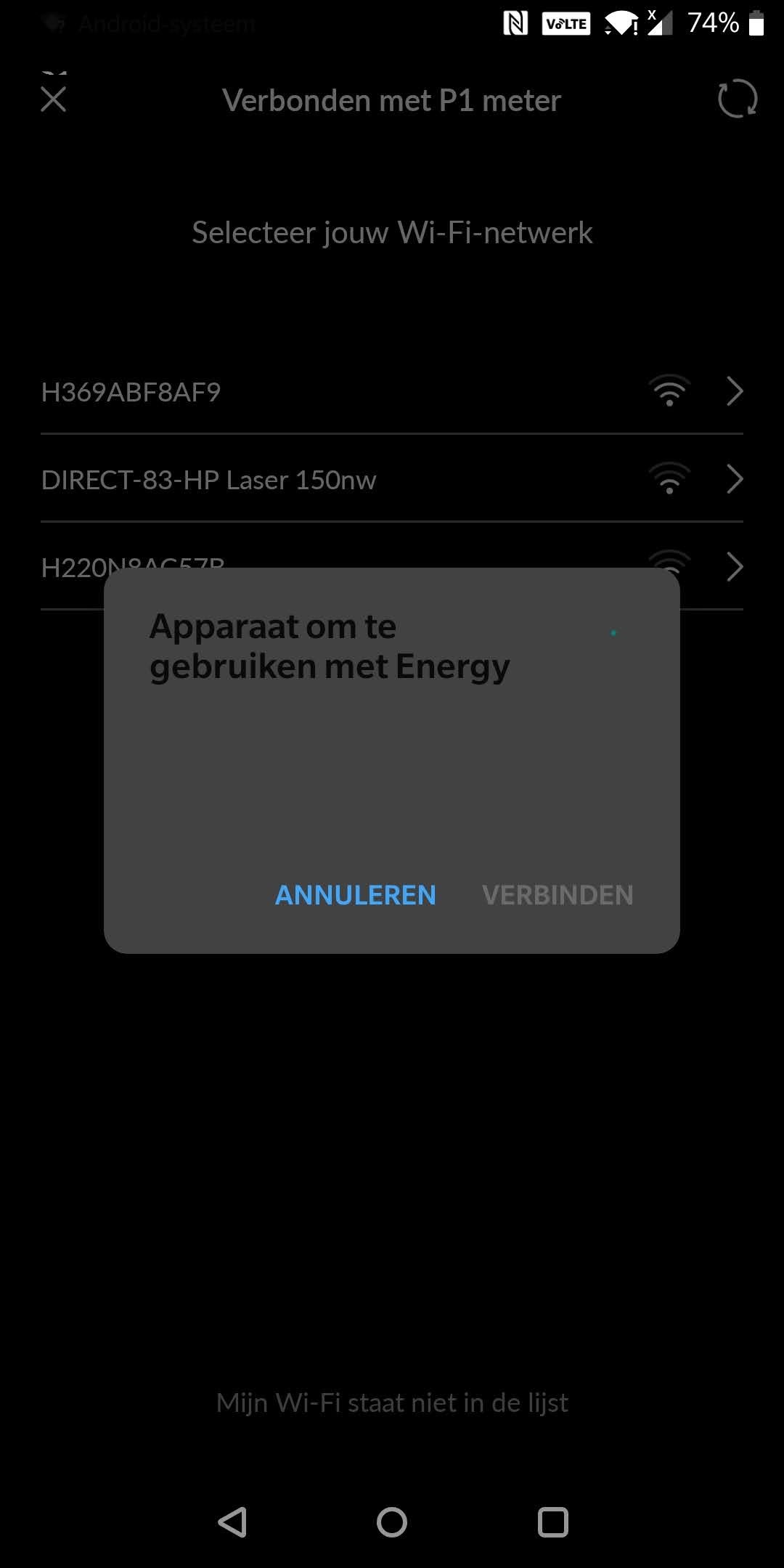 Er staat steeds geen verbinding mogelijk met netwerk p1 meter setup