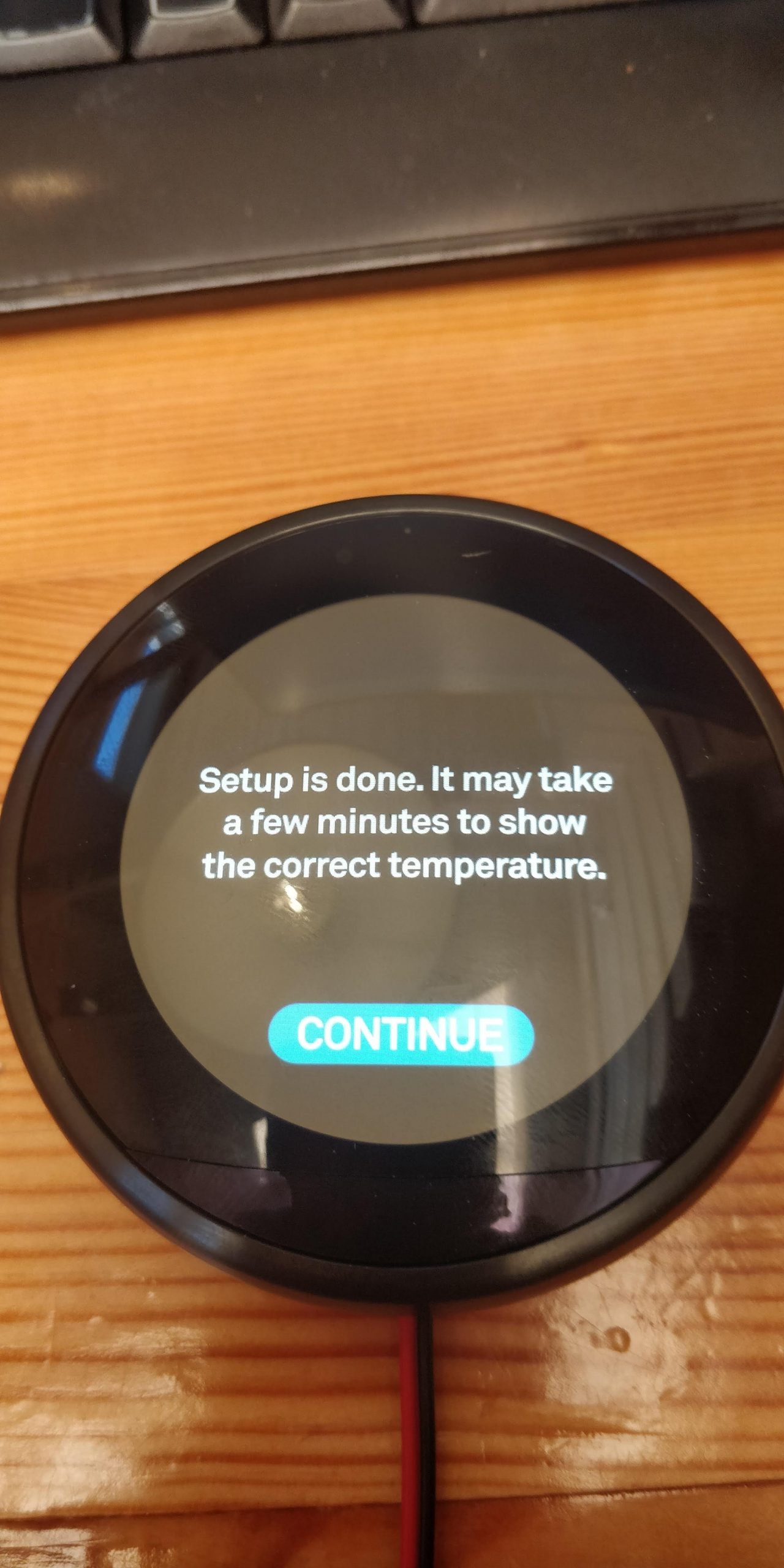 Testopstelling: Pak de Nest Thermostaat uit en verwijder alle verpakking- en bescherm foliën. De Nest Thermostaat bestaat uit de Thermostaat met “base-plate” en een zogenaamde “Heat link”. Deze Heat link hang je aan je CV en communiceert draadloos of bedraad met de Thermostaat. Ik heb een testopstelling gemaakt door de beschermkap van de Heat Link te schroeven, hierdoor komen een 12 tal schroefconnectors vrij. Vervolgens heb ik een stukje tweelingsnoer met stekker op de L (bruine draad) en N (blauwe draad) schroefconnectors te monteren. Omdat de draadloze connectie bij mij niet goed werkte, een ander stukje tweelingsnoer gemonteerd op de T1 en T2 schroefconnectors van de Heat Link, en deze afgemonteerd op de T1 en T2 schroefconnectors van de base-plate van de Thermostaat. Tot slot de Thermostaat op de base-plate gedrukt.