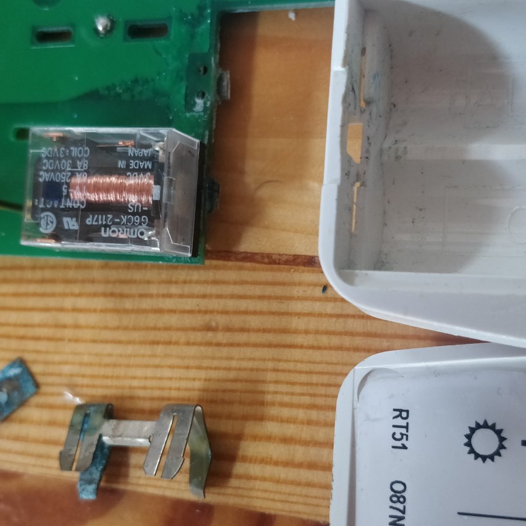 Mijn vloerverwarming is per ruimte qua temperatuur te regelen, zo is mijn woning in 5 zones ingedeeld waarbij per zone de temperatuur geregeld wordt met een Danfoss RT51 kamerthermostaat. Deze kamerthermostaat werkt op 2 AA-batterijen. Nu is helaas bij één van die kamerthermostaten één van de batterijen gaan lekken waarbij het zuur de printplaat onherstelbaar heeft beschadigt.