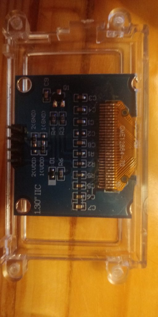 - Tot slot de 1.3″ OLED display met jumperkabeltjes verbonden met de Wemos D1 mini conform de pinout beschrijving eerder in dit document.