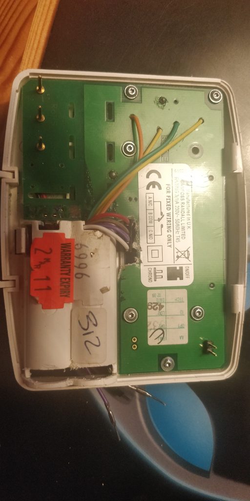 - De Danfoss kamerthermostaat op zijn basis geplaatst. (Eerst de CV, Pomp en 24v adapter voor de kleppen voor de zekerheid uit het stopcontact gehaald)