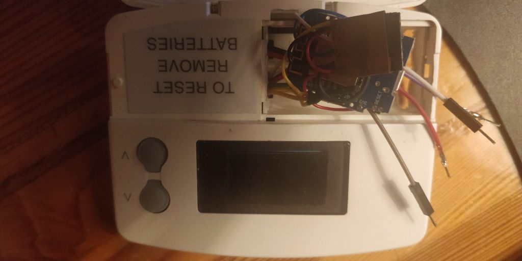 Dit levert weer een leuk DiY-projectje op. Plan is om de behuizing van de Danfoss kamerthermostaat in stand te houden, in de behuizing een Wemos D1 mini onder te brengen (in het batterijen compartiment), een BMP280 voor het meten van de temperatuur in de ruimte, een nieuw OLED of LED schermpje in de behuizing te plaatsen en de 2 soft-touch knopjes waarmee je de temperatuur instelt te hergebruiken.