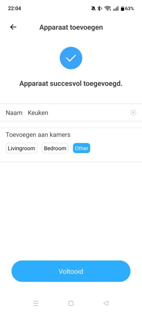 Ik moest dit proces tot wel 5x herhalen voordat de dimmer uiteindelijk gevonden werd. Geef de dimmer een zinvolle naam en wijs hem optioneel toe aan een ruimte. Je kunt nu even testen of de dimmer werkt door hem aan- en uit te zetten.