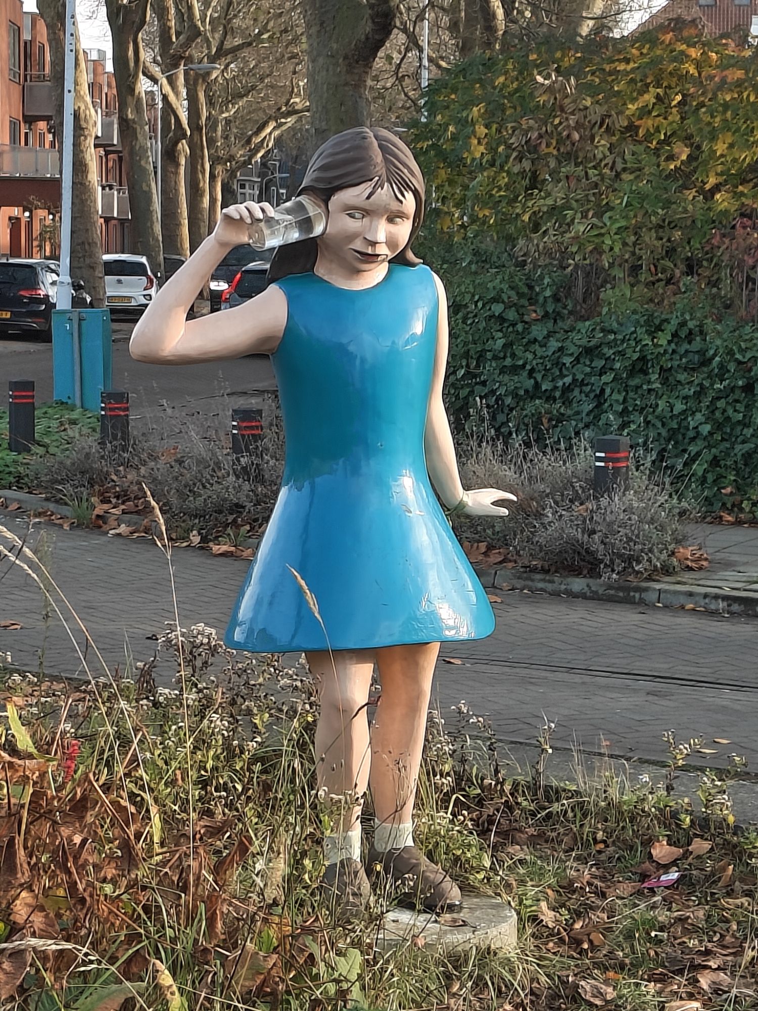 Bij de vishandel haal ik wat kibbeling en rust ik even uit, Diesel krijgt een paar koude stukjes kibbeling van de dame achter de balie. Daarna wandel ik langs de Zaan via Koog aan de Zaan naar Zaandijk. Ik loop even, samen met bussen vol toeristen, de Julianabrug op voor een mooi overzicht over de Zaanse Schans. Met links en rechts Japanners met enorme fototoestellen neem ik met mijn mobieltje ook enkele foto’s.